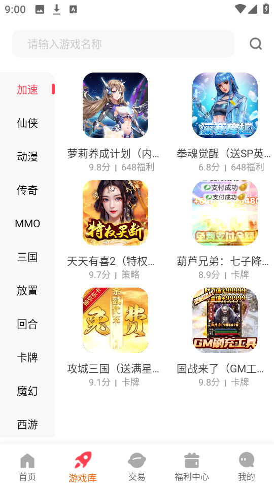 探玩游戏盒子,包含了仙侠,传奇,三国,放置,回合,卡牌,魔幻,西游等一系列题材的游戏资源。不定时还可以领取游戏福利礼包哦,玩家可以直接输入关键字,搜索自己感兴趣的游戏资源,还可以实时查看交易记录哦。