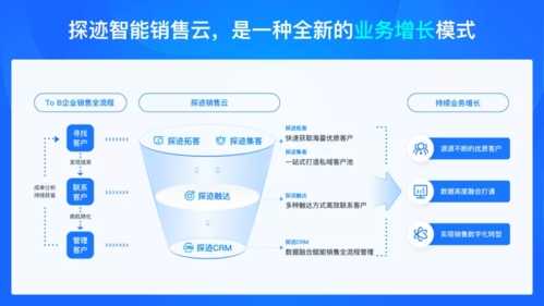 广州探迹科技有限公司是专业的智能销售服务SaaS提供商,致力于用大数据和AI技术帮助企业全面提升销售效率。探迹通过不断挖掘和分析全网公开信息,并结合NLP、机器学习算法等人工智能技术,为ToB企业提供从线索挖掘、商机触达、客户管理到成单分析的全流程智能销售SaaS服务,帮助企业解决在寻找、联系、管理客户时遇到的销售难题,高效获取精准销售线索,降低获客成本,从而全面提升销售效率和业绩。