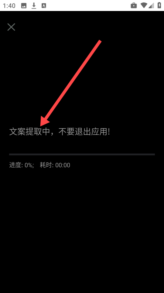 4、任意选择一个视频内容之后,等待片刻,会看到界面上有显示文案正在提取中的提示。