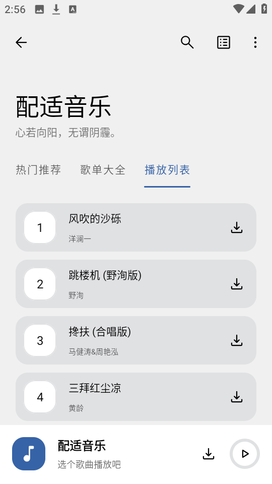 配适音乐,一个汇聚海量热门音乐资源的平台,你可以随心打造属于自己的音乐空间。通过简单输入歌曲或歌手名称,快速定位到心仪的音乐内容,同时支持一键收藏与下载,让你随时随地享受个性化音乐盛宴。