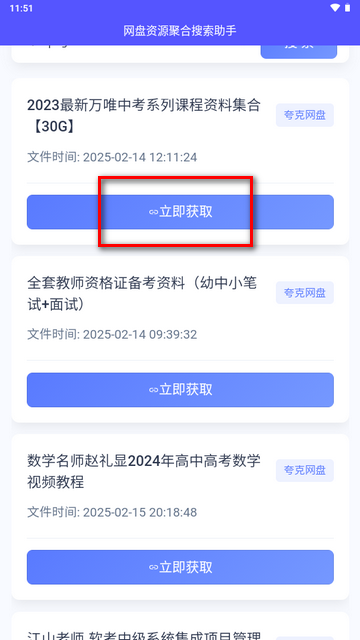 4、找到目标资源后,点击立即提取”按钮,即可快速获取对应的网盘链接地址。