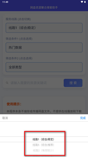 2、进入软件后,用户可以根据个人需求选择合适的线路配置,以优化搜索效率。