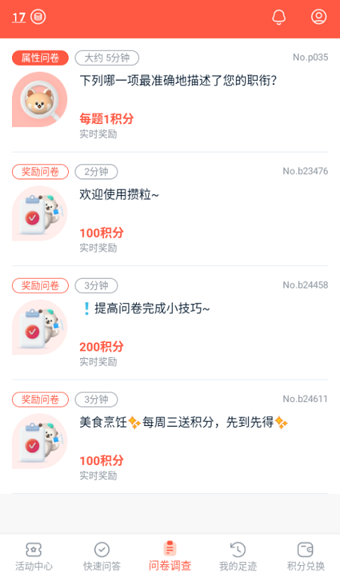 提供详细的积分变动记录、兑换历史以及已完成问卷的统计信息。