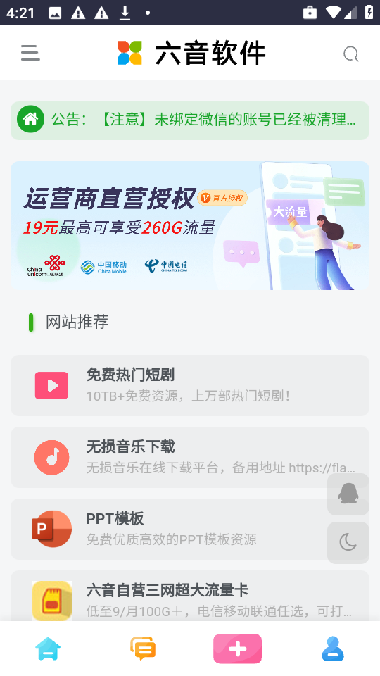 1、首先从官方渠道下载并安装最新版本的六音软件库,启动应用程序。