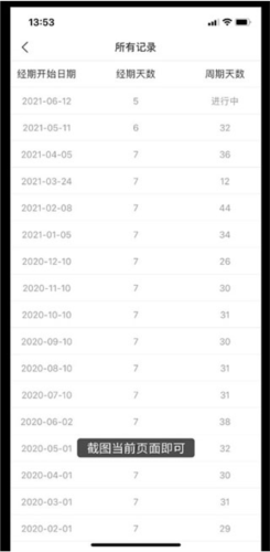 通过截图形式将其他平台上的经期数据迁移到她扶Tough,既方便又快捷,同时保证了记录的完整性。