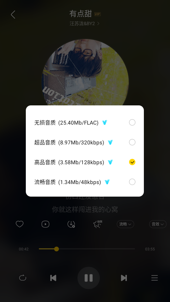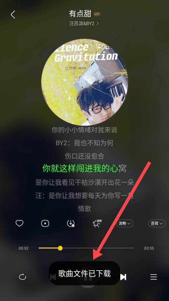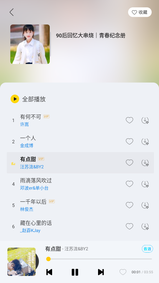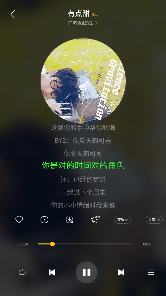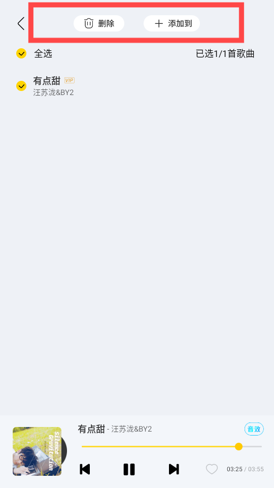 4、在歌单内挑选一首喜欢的歌曲开始播放,这里以有点甜”为例进行演示。