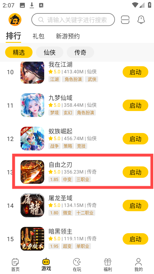 4、选定游戏后,点击启动”按钮,即可快速进入游戏世界。