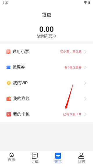 2、在当前持卡数量为零的情况下,点击我的卡包以开始绑卡流程。