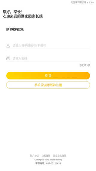 1、下载并安装闵豆家园家长端app,启动后进入登录注册界面。