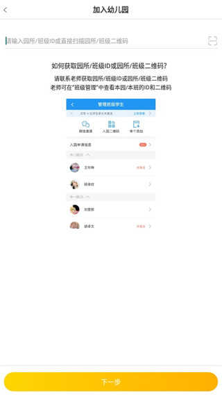 4、通过输入班级ID或园所信息加入对应的幼儿园。