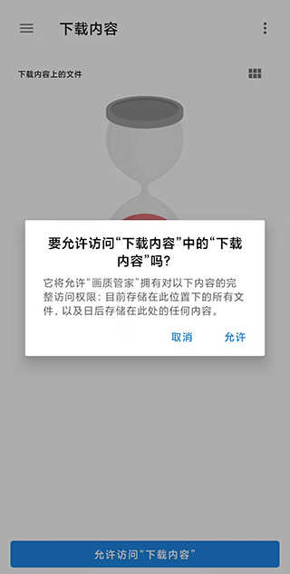 2、点击下方允许访问下载内容,画质管家会自动检测已下载的游戏和能适用的游戏;