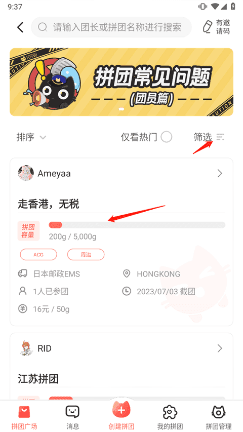 此外,萌购任你购app最新版还支持拼团服务,你可以在这里与其他用户一起拼团,也可以自己成为团长并发起你的拼团,不过成为团长需要一定的要求才可以创建拼团,参与拼团后用户可以享受更优惠的服务。总之如果你二次元,或者是喜欢收藏二次元手工艺品用户的话,那这款软件你一定不要错过哦,快来下载使用吧!