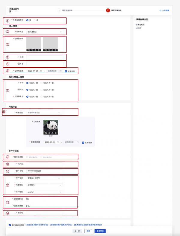 4.1、填写主体信息