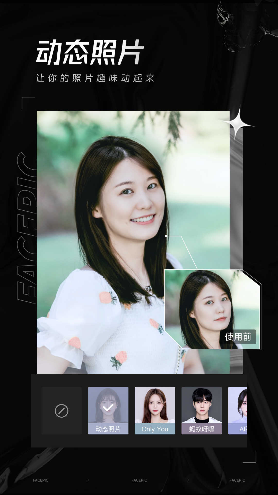 facepic软件是一款功能强大且易于使用的图片美化编辑应用,适用于个人娱乐、老照片修复和创意设计等多种场景,产品内置了多种精美的滤镜特效,一键操作,使照片瞬间拥有高级质感。