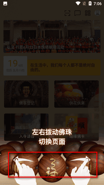 2、进入软件后,左右拨动佛珠可切换页面。