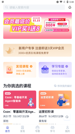 特别推出免费课程专区,精选优质内容供用户零成本学习,助力每一位热爱成长的互联网人实现职业突破。此外,平台还定期举办独家活动,提供优惠券、学习礼包等多种形式的福利,让用户以更实惠的价格享受高品质课程学习体验。