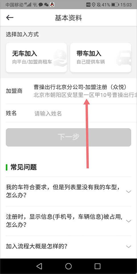 带车加入时,需要网约车从业资格证,以及网约车运输证。下图显示的页面是带车加入时需要的证件