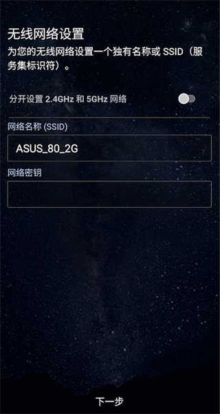 注意:如果您需要分开设置2.4GHz和5GHz网络,请开启此功能并分开设置各频段的无线网络名称和密码;
