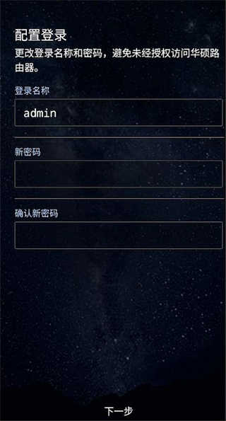 10、设置作为登录路由器设置页面的账号和密码,点击下一步”;