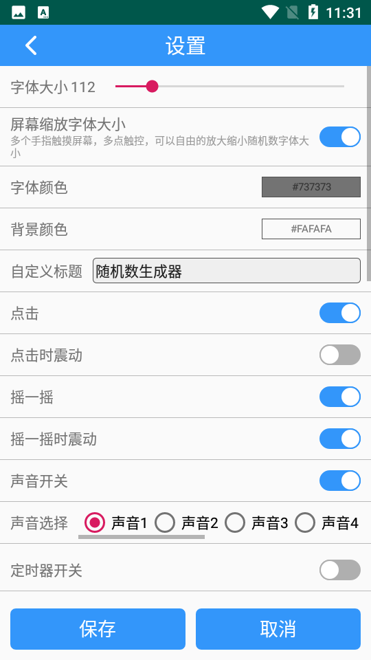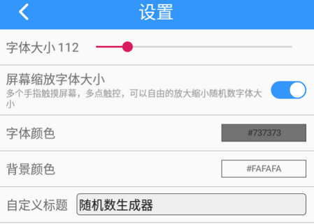 同时支持摇一摇手机、点击手机两种方式生成随机数,还可以设置在生成随机数的同时是否产生震动。