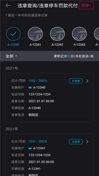 4、点击违章查询,可以查看车辆违章记录以及在线缴费;