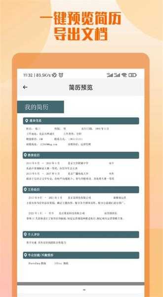 3、界面设计简洁明了,即使新手也能快速上手,轻松完成简历制作。