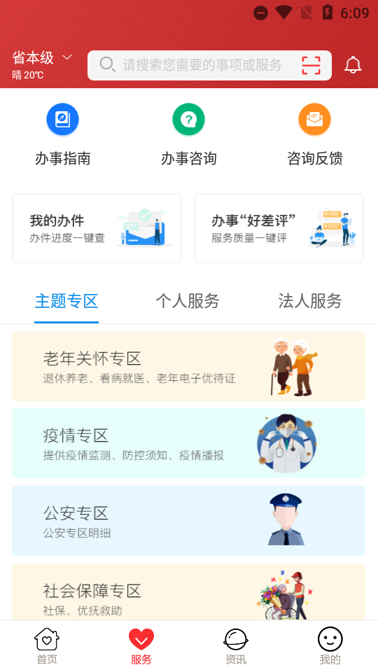 4、点击各级分厅服务”选项,找到主题专区”中的教育专区”,高考各项应用均有提供。