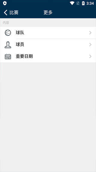 2、在更多选项中可以浏览各支球队、球员的数据统计,同时还能查看重要时间节点;