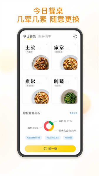 1、软件具备智能推荐功能,可有效解决用户每日饮食安排的问题,让生活更加便捷。