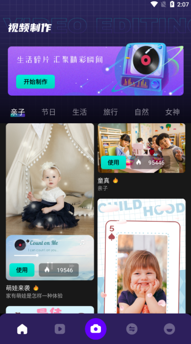 1、将生活的片段汇聚成激动人心的时刻,通过添加音乐和特效创作创意和纪念音乐专辑;