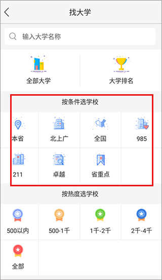 4、还可以按照个人条件和热门程度筛选目标院校,制定更合理的志愿填报方案。