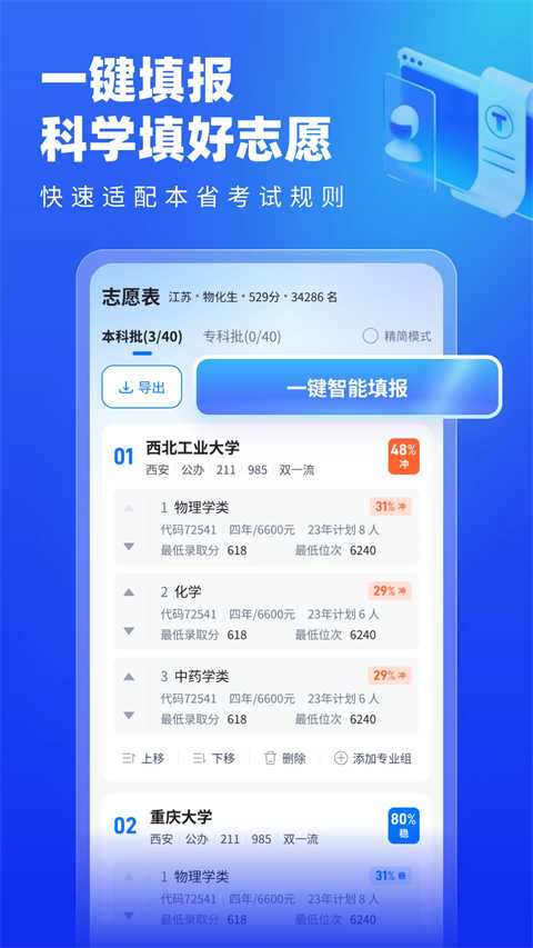 678志愿助手app是一款专为高考考生量身打造的智能辅助工具。它不仅整合了全国各大院校的招生数据和历年分数线,还提供了详尽的专业介绍与分析。通过输入个人分数、位次以及目标方向,系统能够生成个性化的志愿填报建议。