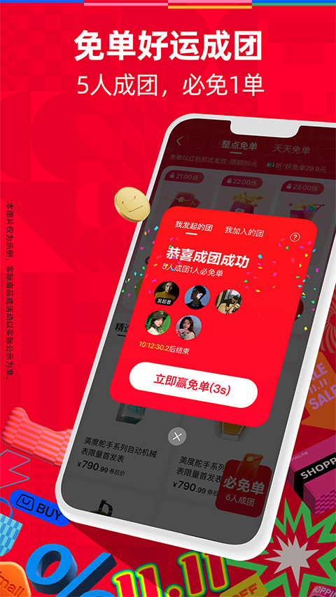 2、整点免单:每天12-23点每小时送出1000份免单大奖