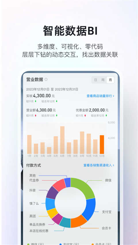 4、协助商家快速梳理每月经营数据,深入挖掘潜在价值。