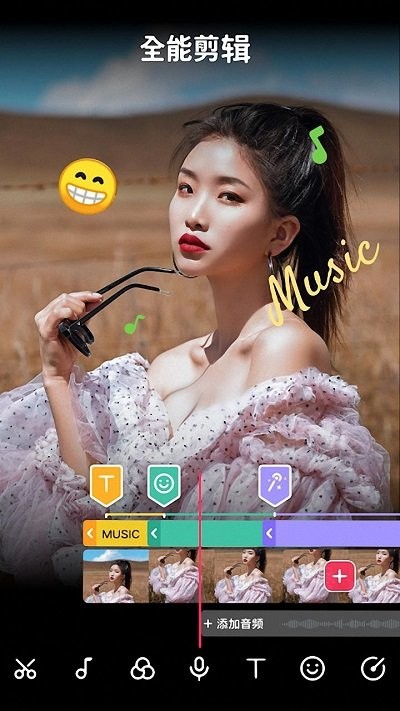 4、“音乐”内置了很多音乐,可以加入多段音乐作为背景音乐,让你的作品表达无与伦比。