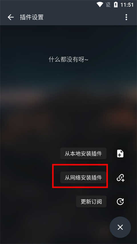 3、进入插件管理页面后,点击右下角的加号图标,然后选择从网络安装插件”: