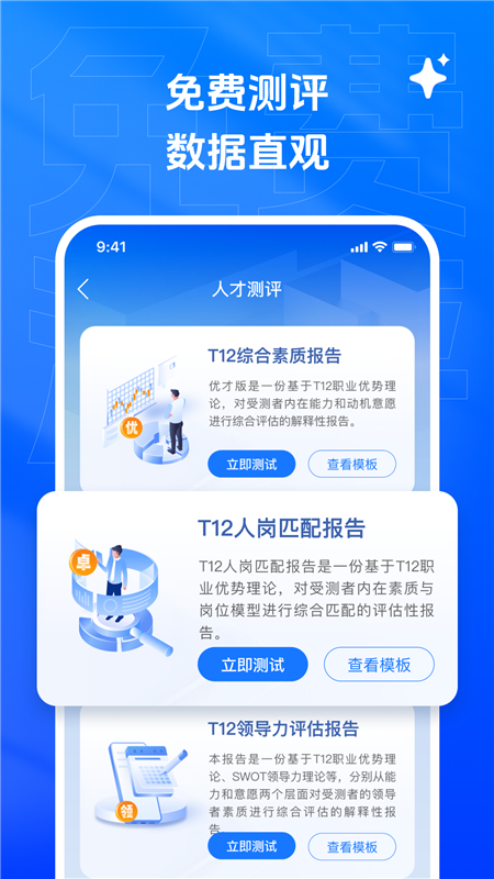 用户可通过平台免费参与多项能力测评,深入了解自身职业潜力。