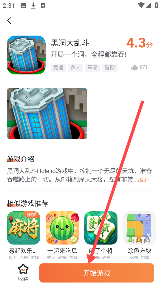 3、从众多游戏中挑选任意一款进行体验,这里以黑洞大乱斗”为例进行展示。