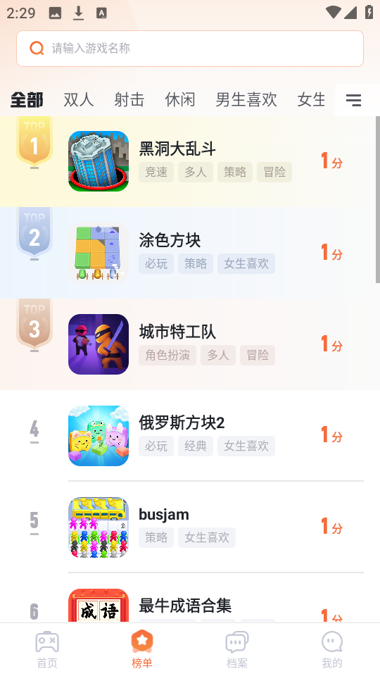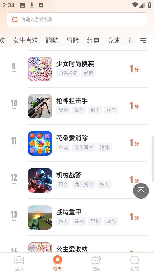 3、首页会清晰列出每款游戏的关键信息,如名称、图标样式、当前排名以及简要的游戏概述或标签标识。
