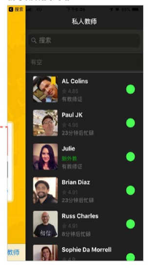 5、在私人教师”页面选择心仪的外教,开始你的学习之旅吧~