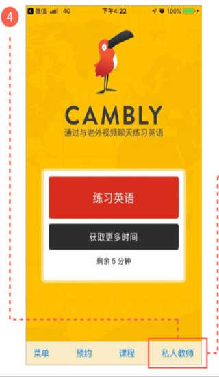 1、下载并安装Cambly App,完成注册后进入菜单”页面