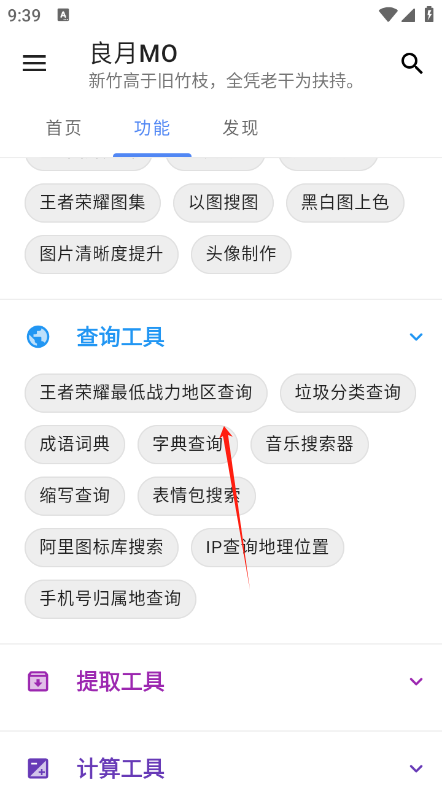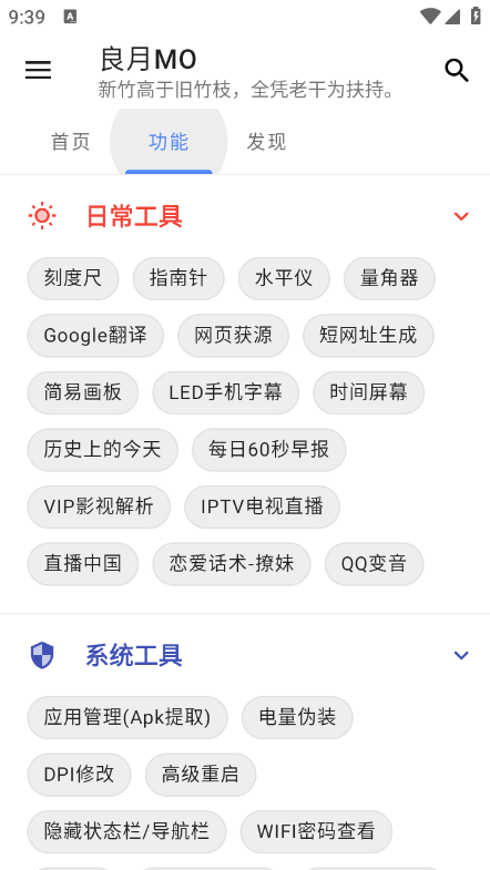 点击功能版块,提供大量的日常工具和和系统功能