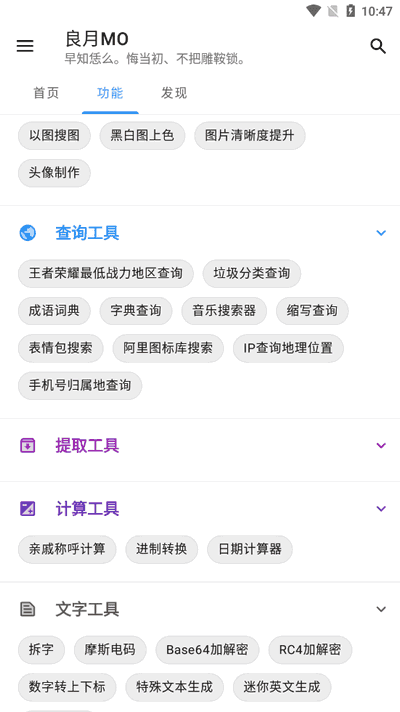 良月MO工具箱是一款功能全面的实用工具软件,涵盖早报、翻译、手机字幕、历史上的今天等,方便用户随时获取各类信息了,而且所有工具全部免费,无需付费即可享受各种功能服务,为用户提供了高性价比的使用体验,快来下载体验吧。