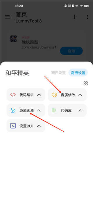 5、除了基础画质设置外,高级选项中还能调整音效质量,甚至可以输入自定义代码来进一步定制画质效果。