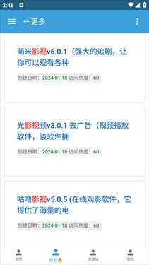 烛夜软件库是一款有着海量资源的app,在这里用户能输入大概的内容,来联想出各种资源软件,你输入的越详细,你找到的资源将更加精准,选择一个软件来进行下载,你可以直接下载或者使用备用的下载链接,快来下载吧。
