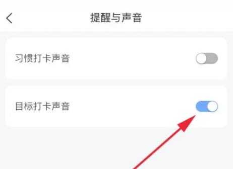 3.在打开的提醒与声音页面,开启【目标打卡声音】按钮即可