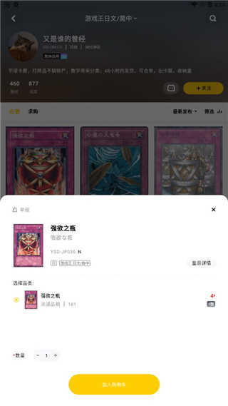 4、挑选心仪卡牌加入购物车,确认无误后即可下单购买。