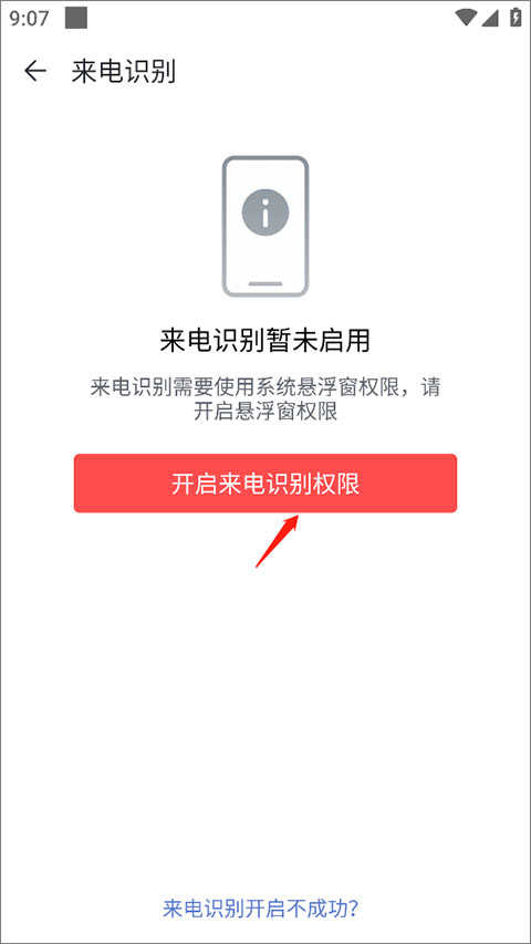 3、点击开启来电识别权限”,授权应用使用相关功能。