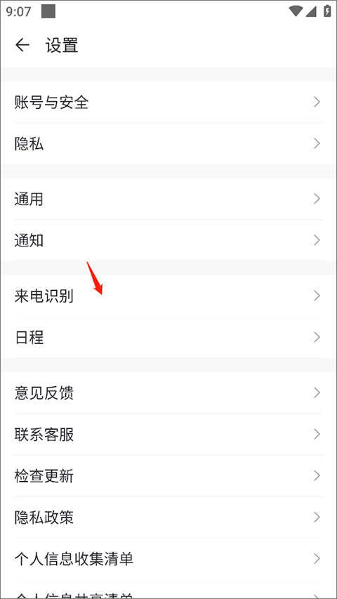 2、在设置页面中找到来电识别”选项并点击进入。