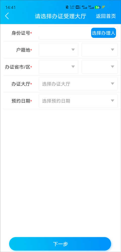 4、填写相关个人信息,点击下一步”,按预约时间前往指定地点办理业务。